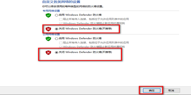1.关闭系统防火墙:“控制面板→系统和安全→Windows Defender 防火墙”,选择 “关闭防火墙”。