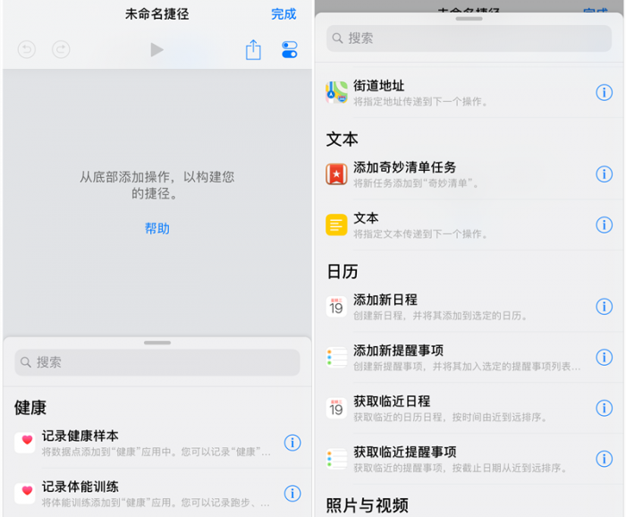 「捷径库」里面保存用户已有的捷径。「捷径中心」则可以下载现存的捷径(包括官方分享和他人分享的),这里有多个分类,你可以根据分类去寻找是否有自己需要的捷径,也可以搜索。
