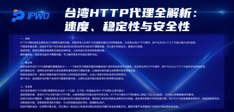 台湾HTTP代理在网络访问、数据采集等场景中发挥着重要作用。以下是对台湾HTTP代理的速度、稳定性与安全性的解析: