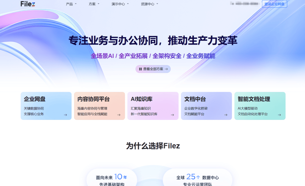 作为国内企业网盘市场的早期入局者,联想Filez在行业内积累了深厚的技术底蕴,主要服务于对数据安全与系统稳定性有极高要求的中大型企业。它不仅仅是一个文件存储中心,更提供了一整套包含文档在线编辑、精细化权限管控、移动办公在内的非结构化数据管理方案。其强大的底层架构支持海量数据的并发处理,能够与企业的现有IT系统进行深度集成。