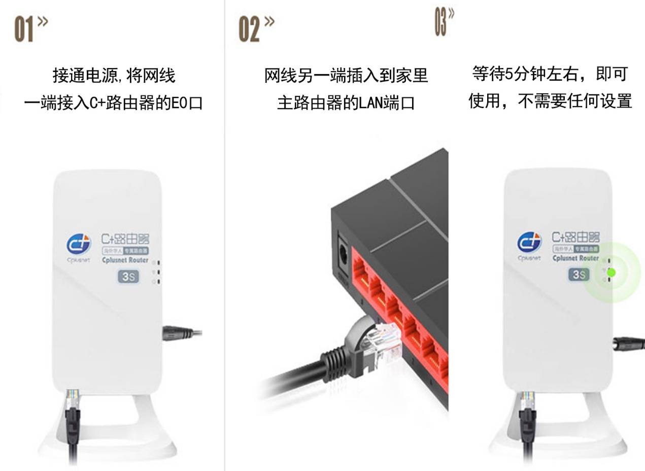 最让人省心的是,它的使用方法超级简单,即插即用,完全不需要任何设置!只要把它用网线接在国外家里的路由器或是 Modem 后面,插上电源,手机、PAD、电脑、电视盒子等智能设备连接上 C + 路由器的网络信号,瞬间就和在国内一模一样!