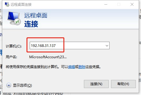 从家中电脑发起连接:按Win+R,输入mstsc打开远程桌面连接窗口。输入公司电脑的IP地址,点击“连接”→输入公司电脑的用户名和密码→点击“确定”即可登录。