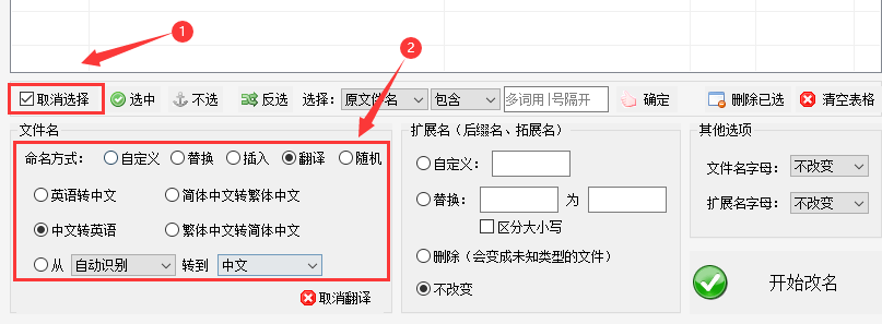 4iphone日本vpn软件、添加好需要的文件后,我们先勾选“全部选择”再来从“命名方式”中选择“翻译”功能,勾选“中文转英文”。