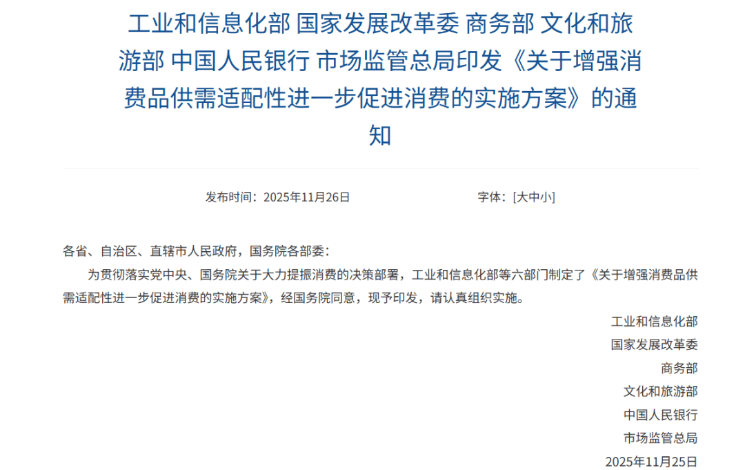 值得关注的是,近期,关于促进消费的政策不断出台。工信部等六部门联合印发《关于消费品供需适配性进一步促进消费的实施方案》,从技术创新、扩大特色产品供给、精准匹配人群需求等方面部署多项任务。明年我国经济工作的首要任务是坚持内需主导,建设强大国内市场,深入实施提振消费专项行动,制定实施城乡居民增收计划,扩大优质商品和服务供给,清理消费领域不合理限制措施,释放服务消费潜力。