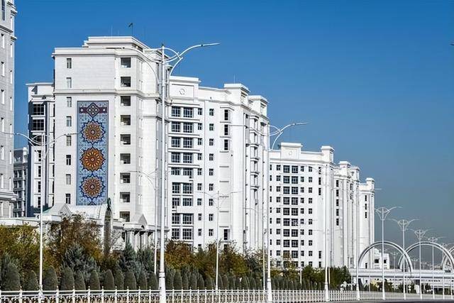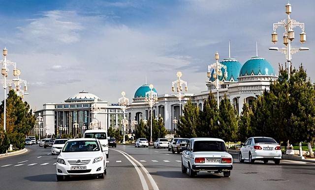 首都阿什哈巴德,全城建筑裹着白色大理石,看起来干净得像新刷的一样,这可是吉尼斯纪录,世界上用大理石最多的城市。街道宽敞,公交车、私家车基本都是白的,因为从2015年起,政府就开始禁进口黑色车。