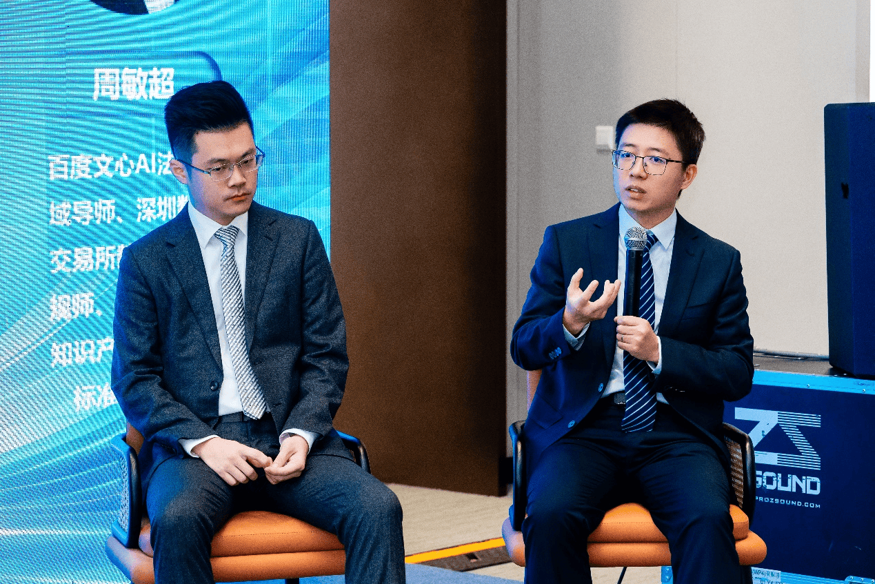 图五 周敏超律师作为百度文心AI法律领域导师,受邀参与研讨会,围绕AI对法律行业的深度影响与行业洞察等议题层层深入,为与会人员带来了一场知识与思维的盛宴。