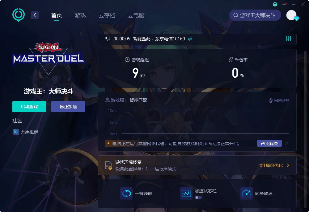 使用流程也很简便: - 首先下载并安装UU加速器; - 启动后搜索“游戏王:大师决斗”; - 选择适合的加速方案(例如入库加速、游戏加速),确认后即可一键加速。
