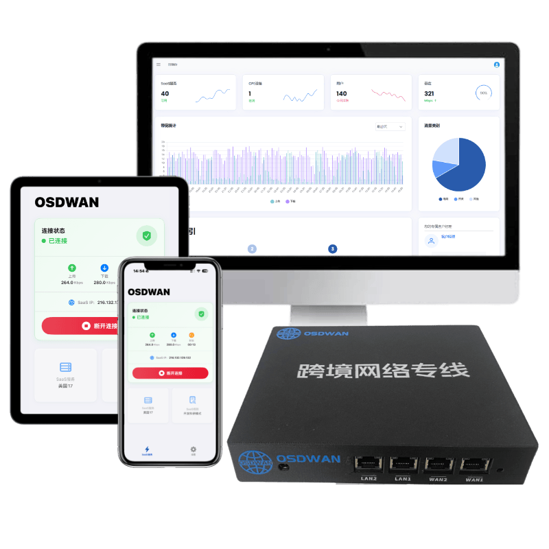 OSDWAN作为国内专业的跨境网络服务商,为出海企业提供合规、高速、稳定的网络解决方案,支持硬件、软件方案灵活部署。