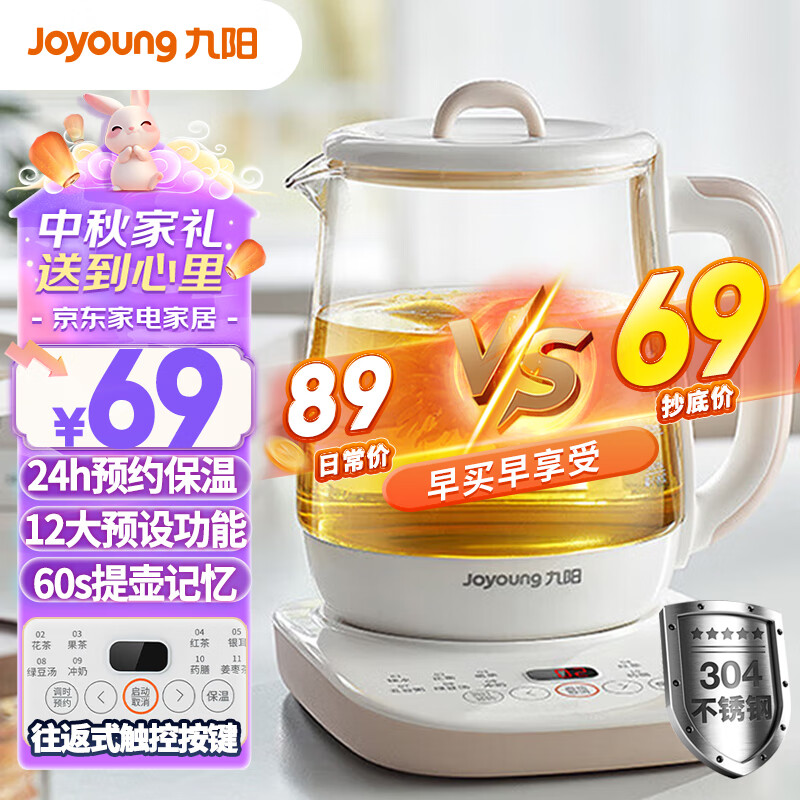 九阳(Joyoung)养生壶 1.5L煮茶器电水壶烧水壶电热水壶开水壶 保温煮茶壶玻璃电茶壶线